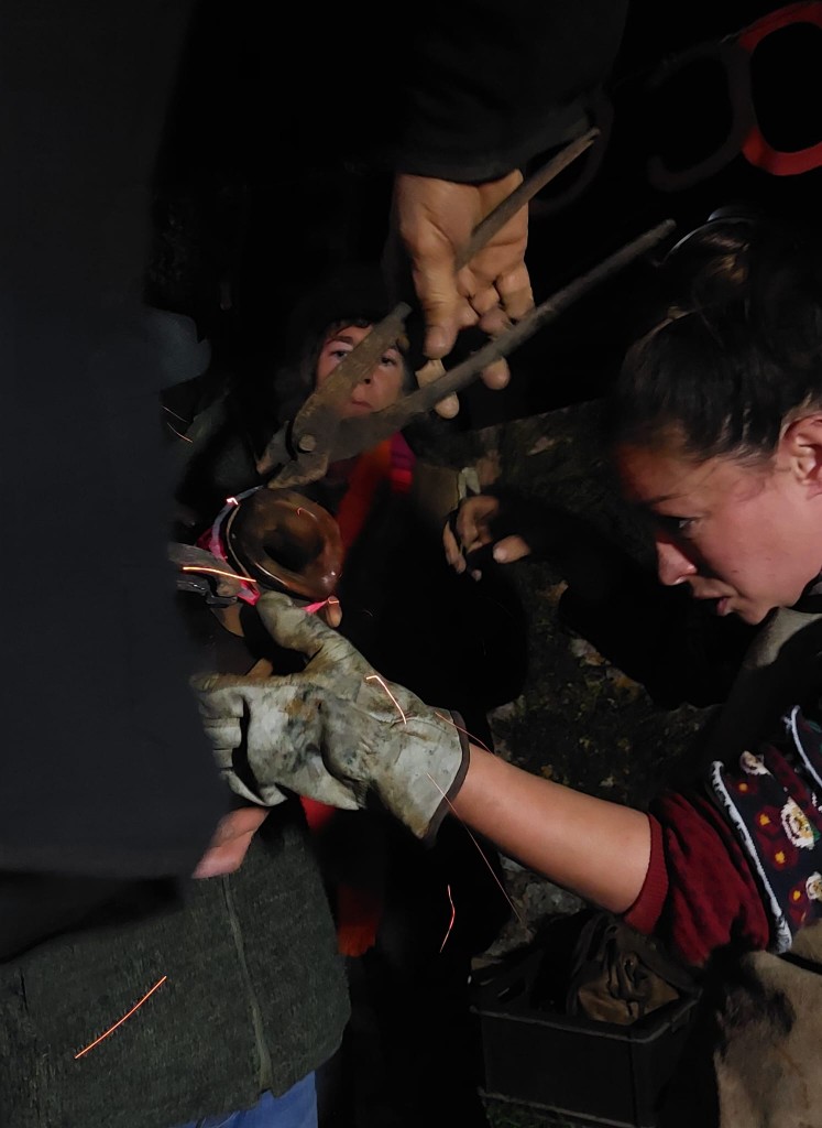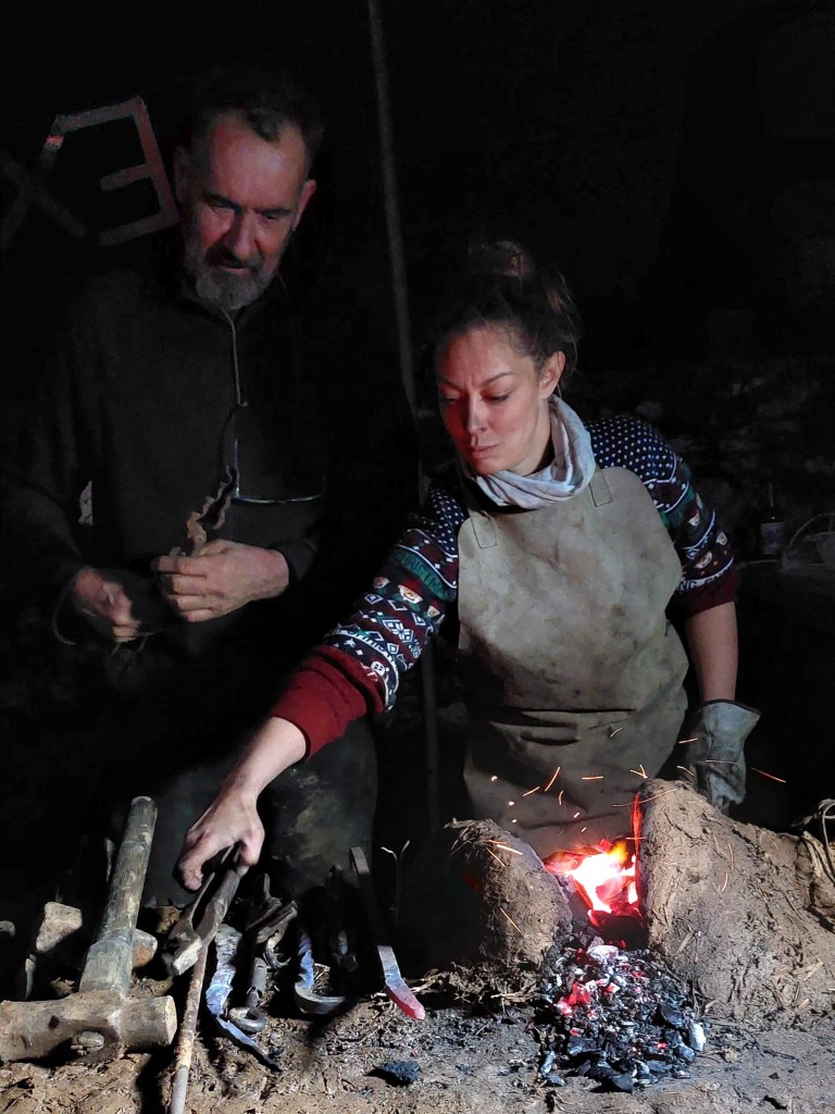 Devant la forge avec Arjen van der StratenIntervention terre et forge au Tympan de GoujounacTango 2024 Terre et Forge Shirley Cambonie